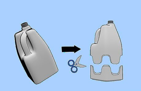 Cut the bottoms off the jugs. Leave tabs on each of the sides. It will look like this:Make Garden Hot Caps from Used Milk Jugs Step 1Bullet1.jpg