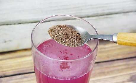 Make a protein shake. Pour yourself a glass of water or almond milk. Add in 1-2 tablespoons of protein powder, if you feel like you need more put some more in but not too much. Stir with a spoon and drink away.