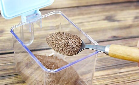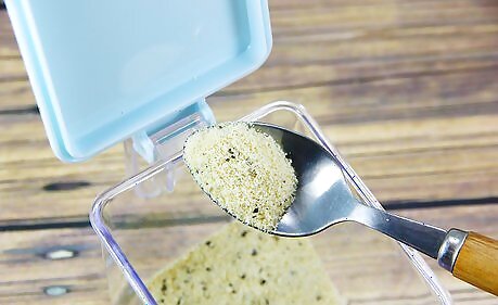 Store the protein powder. Find a clean empty container such as a mason jar to use for storage. Transfer the protein powder in the container using a wooden spoon to prevent spilling. Seal with a lid and store in the fridge to keep it fresh for longer.