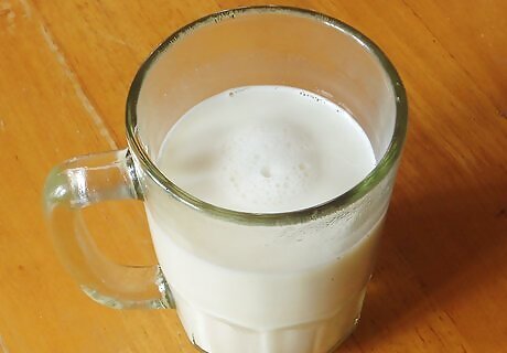 Warm one cup of milk in the microwave for about 1 minute and 20 seconds (be sure to use a microwave safe mug).
