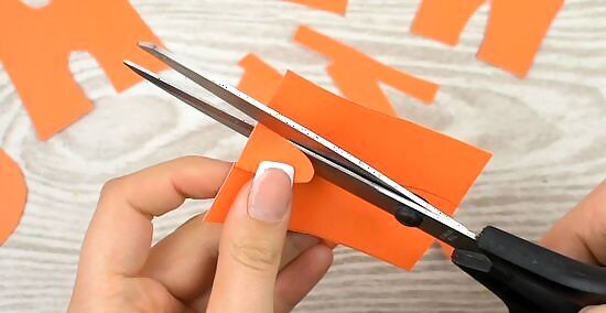 Cut out the letters to spell out festive phrases. If you want your garland to say something like "Happy Halloween," then use one sheet of construction paper for each letter. Draw out each letter in block text and cut around those lines. Continue the process until you have the entire word or phrase cut out. You can also print out the letters on colored paper and cut them out. This avoids tracing out your own letters. For another idea, cut out letters in orange and glue them onto black paper, or vice versa. “Happy Halloween” in orange glued onto black paper would look festive. You can also make multiple garland streams with different phrases like "Trick or Treat."