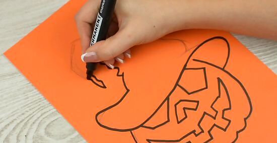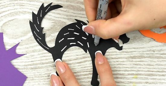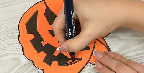 Decorate the shapes more if you want to. You can leave each cutout plain if you want to. If you want to decorate them, then use markers to accent the pieces a little more. Turn a plain pumpkin into a jack-o-lantern by drawing a face on it with a black marker. You can also cut out additional shapes and glue them on the cutouts, like making a paper witch. Get creative and decorate however you want. This is a great activity for kids, too. Le them draw or places stickers on the shapes to help decorate.