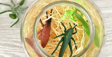 Pack the jars with Spanish moss for a water-free option. If you don’t want to worry about water making a mess, then get some Spanish moss from a craft store. Pack this around the Halloween objects instead to give your home a creepy, haunted-house look. If you want to go for a more festive look, you can also use plastic grass from a craft store. Look for orange, purple, or other Halloween colors.