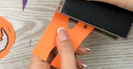 Cut out the shapes you want to hang on your walls. Take a sheet of construction paper that matches the color you want to use. Then use a pencil and draw out the shape you want. Cut along those lines to make the object. Repeat this for as many pieces as you want to hang. To make a pumpkin, for example, draw out a pumpkin shape on a piece of orange construction paper. Then cut around the lines you drew. To make your designs uniform and easier to draw, try downloading and printing a template of the object you want. Then trace it onto the construction paper. This makes the drawing much easier.