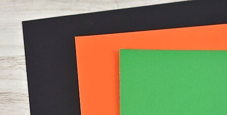 Get colored construction paper that matches your decoration idea. The specific colors you use depends on which shapes you want to make. Envision the objects you’re going to make, and get construction paper that matches the colors you’ll need. Classic Halloween colors are orange and black, so plan some shapes that use the color schemes like jack-o-lanterns. Mix in other colors like green, purple, and yellow for an even more festive tone. For bigger cutouts, try finding larger pieces of construction paper at the craft store. You could also glue multiple pieces of construction paper together to make bigger objects.