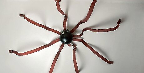 Hang the balloon on the ceiling with tape. Pick any spot on the ceiling. This decoration looks especially good in the corner of a room, resembling a spider hiding away. Fold a piece of tape over itself and stick it onto the point where the legs are taped down. Then raise it up to the ceiling and attach it. Be careful standing on a stepstool or chair. Have someone nearby in case you need help. Don’t press the balloon down too hard or you could pop it.