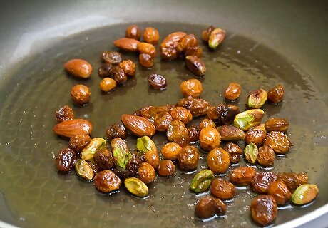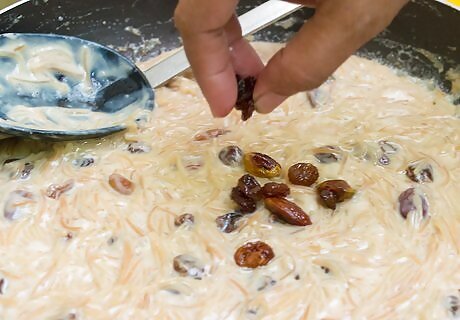 Garnish with the remaining dried fruits and nuts. Use whatever leftover dried fruits and nuts you have on top of your kheer. If you like, you can garnish with different fruits and nuts than are in the kheer for more complex flavors.
