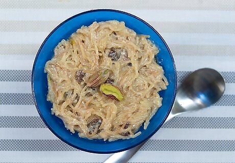 Serve and enjoy! The time has come for you to enjoy your vermicelli kheer! You can serve the dish either hot or cold, depending on your taste and the time of year. You can also garnish your vermicelli kheer with fruits like strawberries, bananas or apples for extra flavor and visual effect.