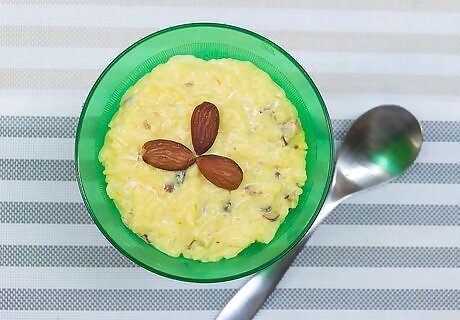 Serve and enjoy! The time has come for you to enjoy your kheer! You can serve the dish either hot or cold, depending on your taste and the time of year. Consider topping your kheer with a few chopped pistachios or almonds for the visual effect.