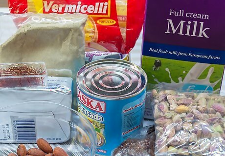 Gather supplies. You’ll need to gather the ingredients for your vermicelli kheer before you start cooking it. The recipe is fairly simple, but you may need to go to a specialty Indian food store for ingredients if your local supermarket doesn’t carry them. For vermicelli kheer that serves four people you need the following ingredients: ½ cup roasted vermicelli; 2 ½ cups warmed whole milk; ½ cup sweetened, condensed milk; 2-3 tablespoons mixed, dried fruits and nuts; ½ teaspoon cardamom powder; 1 tablespoon ghee; a pinch of saffron. If you live near an Indian food store, you can buy roasted vermicelli so that you don’t need to roast it separately. The amount of milk you use can increase or decrease depending on how creamy you want your kheer. Use any dried fruits and nuts you like such as raisins, dried cherries, cashews, almonds, or pistachios. Ghee is a type of Indian butter. If you cannot find it, you can use clarified butter.