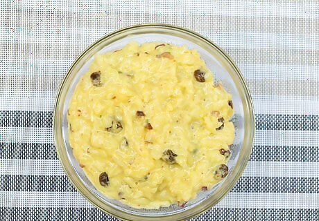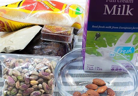 Gather supplies. You’ll need to gather the ingredients for kheer before you start cooking it. The recipe is fairly simple, but you may need to go to a specialty food store for ingredients if your local supermarket doesn’t carry them. For kheer that serves four people you’ll need the following ingredients: 1 cup of slightly overcooked rice, 2 cups of whole milk, 3 tablespoons sugar, 1 tablespoon raisins, 1 tablespoon chopped pistachios, 1 tablespoon chopped almonds, 1/8 teaspoon powdered cardamom, and a pinch of saffron. You can use any type of rice, such as long grained or basmati, for this recipe. It’s probably best to not use flavored rice like jasmine or coconut. If you have leftover rice from another dish, you can use it to make kheer. If you are making the rice just for kheer, it’s best to overcook it a little bit to mimic the texture of leftover rice.
