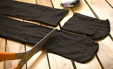 Cut your tights at the chosen length. Add an extra inch (2.5cm) for a hem before cutting. Cut as neatly and straight as possible, using sharp sewing scissors.