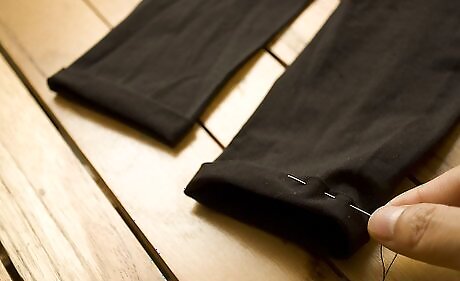 Stitch the hems in place by hand. Use an even, small stitch in the same color as the tights or in invisible thread.