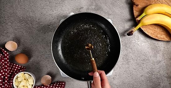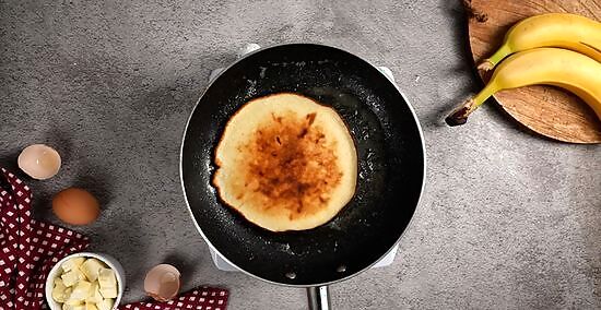 Sprinkle a few flecks of water onto your pan. If it 'dances', or jumps from the pan with a sizzle, the pan is ready for the batter.
