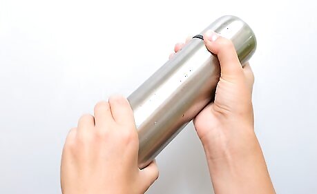 Place a lid on the mixing glass. Hold it firmly and shake for about 20 seconds.