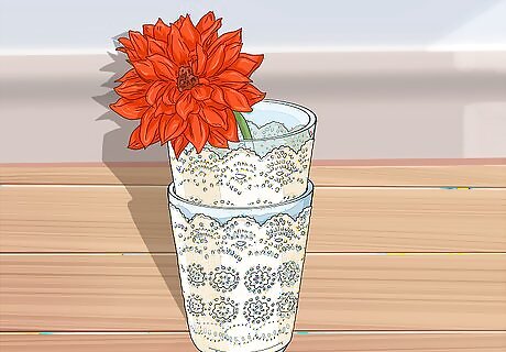Use a doily to dress up a vase. Start by wrapping a doily around a vase (make sure the doily is wrapped tight). Use sewing scissors to remove any excess fabric, then sew the doily around the vase, making sure it fits snugly. Use a clear glass for a more elegant-looking vase. Try using a blue glass vase paired with an off-white handkerchief for a more modern take on this project. Fill the vase with flowers and use it to brighten up your kitchen.