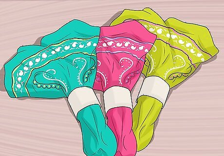 Make a napkin ring out of a bandana. Cut a colorful bandana into 6 x 9-inch strips (you will get a different number of strips depending on the size of the bandana). Take each strip and fold it lengthwise into thirds, then do the same thing widthwise. Sew a button on each bandana strip, approximately 1 inch from the edge. Cut a buttonhole using scissors on the opposite end of the strip. Loop the bandana strip around a rolled-up white napkin and button the strip to secure it in place.