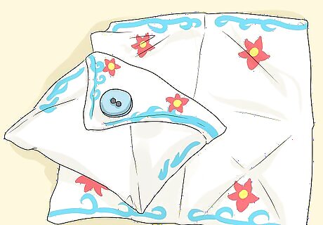 Sew a sachet out of a handkerchief. Take a handkerchief and use sewing scissors to cut out a four-inch square. Place the square pattern side up, then fold three of the corners inward, towards the square’s center. Sew the three sides together to create a pouch that looks like an envelope. Turn the sachet inside out and press it with an iron. Sew a button on the flap (this will be strictly decorative). Pour dried lavender or other dried flowers into the pouch, then sew the flap shut.