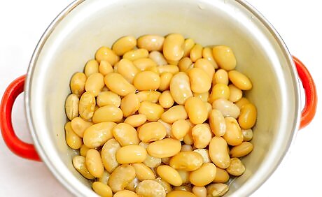 Strain the beans. Turn off the burner and remove the pot from the heat. Pour the contents of the pot into a colander to strain the tender beans. Set the cooked legumes to the side.