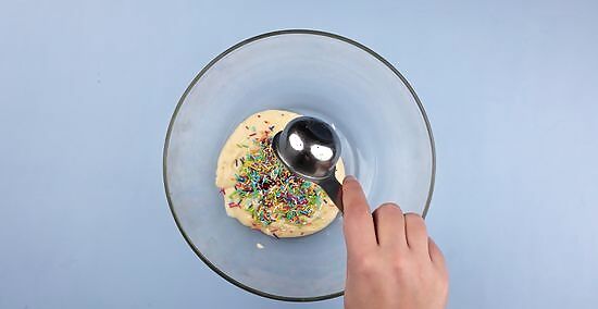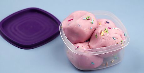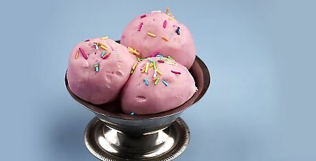 Play with the play dough. Roll it into balls with your hands, and put it into ice cream bowls or ice cream cones. Decorate the balls with candy sprinkles to make it look even more like ice cream. Feel free to nibble on it, but don't eat all of the dough. If you start taking big bites out of it, you'll get a tummy ache!
