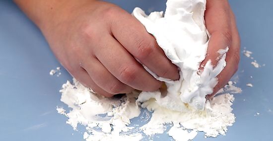 Play with the play dough in an easy-to-clean area. This play dough is soft and foamy, like a cloud. It can get crumbly, however, so play with it some place that it easy to clean. A table would be perfect. When you are done playing with the play dough, put it into an air-tight container. If some of this play dough accidentally gets off your playing surface and into your carpet, don't worry! You can get it out of carpet by carefully scraping it away, then removing leftover stains with something like soapy water or rubbing alcohol.