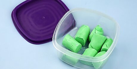Discard the play dough when it starts to turn dry. This type of play dough will not last very long. You can try to make it last longer by keeping it in an air-tight container, but it will still begin to dry out after a few days.