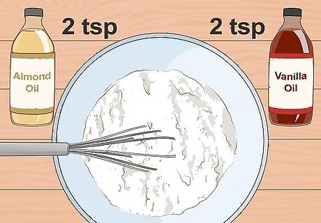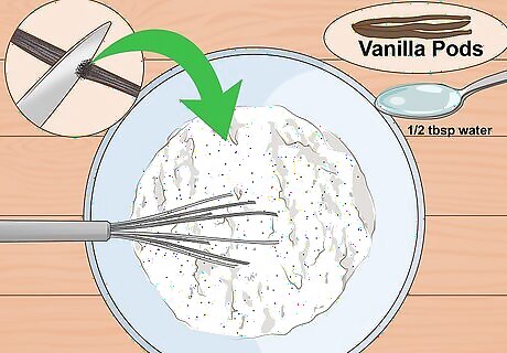 Scrap the insides of the vanilla pods into the bowl. Thoroughly stir to combine everything. Add the water or a few more drops of oil if the mixture appears to be crumbly in texture.