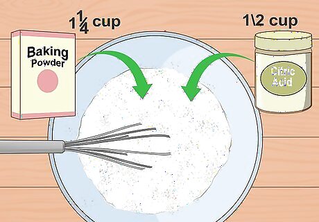 Make the dry mix base. In a large bowl, thoroughly mix the baking soda and citric acid together.