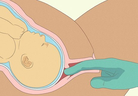 Try deep breathing, sitting on an exercise ball, or supported squats. For exercises to encourage your water to break, your cervix needs to be soft and ready to be dilated on its own. In other words, your body has to already be preparing for labor for these methods to work. If your cervix and body are ready, low-impact exercises can encourage your water to break and start up contractions. Try deep breathing exercises. Hold your breath and exhale slowly through your mouth, imagining the baby being pushed down into your pelvis. Repeat until you feel your pelvic floor muscles relax. Sit on an exercise ball and gently bounce. As you sit, keep your legs apart and move your body up and down on the ball. This can help your pelvic floor contract and relax. Supported squats stretch the pelvic floor, helping your baby move down towards your pelvis. Position your back against the wall and keep your feet shoulder-width apart. Bend your knees and lower your body as far as is comfortable. Exhale as you lower your body and inhale as you stand up again. Once you start having contractions, Dr. Butt says your doctor will coach you through specific breathing techniques that might involve holding your breath for a few seconds as you push.