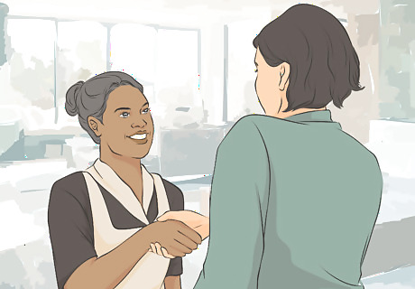 Look for ways to be helpful. Guests will remember people who go out of their way to be friendly and helpful. This may include opening a door, holding an elevator, or carrying luggage into the room. As the manager, you can hire the appropriate staff to provide services. If the hotel budget does not include such staff as bellhops and doormen, you can still encourage your staff to be as helpful as possible.