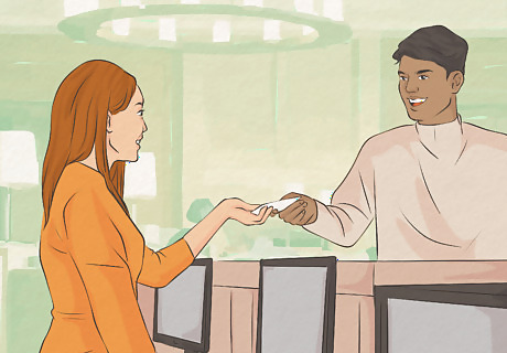 Make a positive first impression. Consider your guests' first contact with your hotel and do what you can to make that as positive as possible. If you have parking attendants, they should greet guests warmly and treat the cars with respect. If you can afford a doorman, guests should be welcomed and guided in to the hotel lobby. Your desk clerks should always be attentive and friendly. As the manager, you need to impress the importance of the first impression on all your staff.