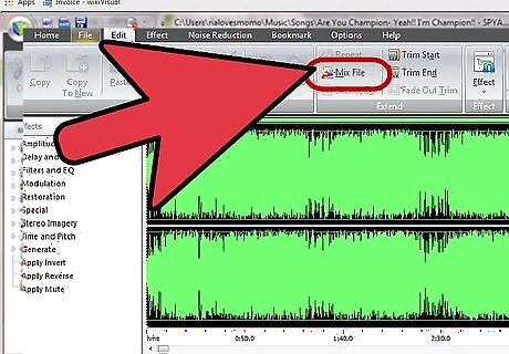 Finish your mix down to a single stereo track. "Mixing down" means taking all the tracks you've recorded and exporting them, or mixing them, to a single stereo track. It's important to do try and get your mix sound as good as it possibly can before mastering. This means finishing up any panning adjustments and finalizing individual track effects. Mastering is best utilized not as a track overhaul, but rather to serve as a soft glue that brings the whole track together. It is better to apply effects using a single stereo track than use the master bus on an entire session. The "master bus" is the master volume channel for all of the tracks you record. Some engineers decide to apply mastering effects to this channel, but it is not advisable for novices. Make sure you have headroom on all of your faders. Any channel, buss, or send needs to stay out of the red. You want to make sure nothing in your mix clips. While it may not be apparent, mastering tends to make imperfections more obvious. Bounce your track using the highest bit-rate possible. If you recorded at the recommended 32-bit rate, maintain this quality. You can convert the file to the CD-standard 16-bit rate once you've applied your effects and are satisfied with the track.