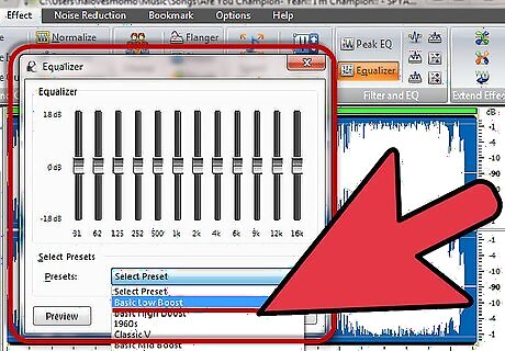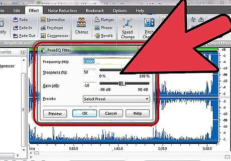 Apply a basic equalization. Equalizing is the art of cutting and balancing all the frequencies in a mix to get the sound you want. Depending on the quality of the initial mix you don't want to make a lot of drastic changes here. Experiment with a linear EQ until you've achieved the desired sound. Remember, it is always more desirable to adjust a track to sound good in relation to other songs, than just sounding good in a vacuum. You want to use more soft cuts when mastering. Try to avoid sharper cuts and keep those for the mixing process.