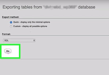 Export your database. You can do this by logging in to the cPanel account of your old web server and launching the phpMyAdmin application. Select the database that contains your WordPress installation and click “Export” and “Go” when prompted. The transfer may take a few moments to complete.