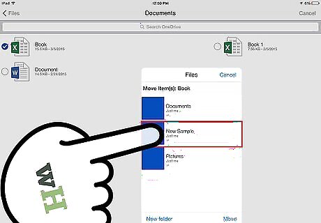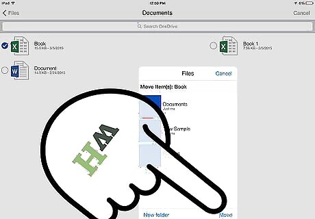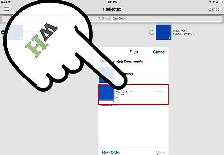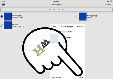 Identify the destination. While viewing the file, tap on it once to bring up a bottom menu. This displays further task options for the selected file. Find the file icon and tap on it. This will bring up the file directory of your OneDrive account. Navigate through the folders by tapping on them until you find the destination sub folder for your file.