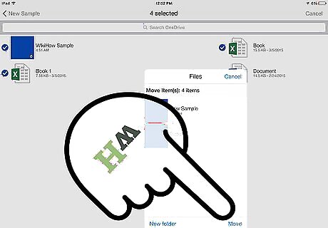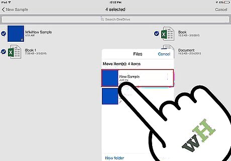 Identify the destination. During the file selections, a bottom menu would appear. This displays further task options for the selected items. Find the file icon and tap on it. This will bring up the file directory of your OneDrive account. Navigate through the folders by tapping on them until you find the destination sub-folder for your folders and files.