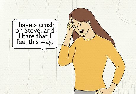 The first step to getting over an obsession is acknowledging it. Before you can shake your crush, you have to accept that it exists. Allow yourself to say you have a crush, and to experience all the complicated emotions that go with it. Consider writing down a few pages about how you feel. Taking some time to express your emotional turmoil can help you feel like you're putting it behind you. State your feelings out loud. You don't have to tell anyone else how you feel, but verbalizing your problem out loud—even if you're the only person in the room—can help it seem real and approachable. It can be as simple as saying "I have a crush on Steve, and I hate that I feel this way."