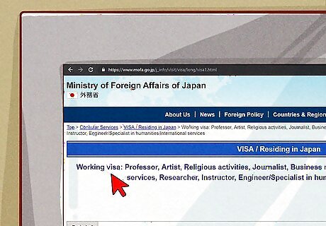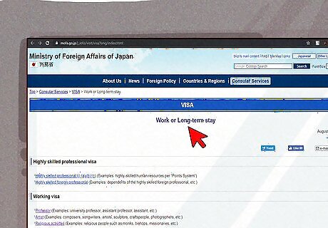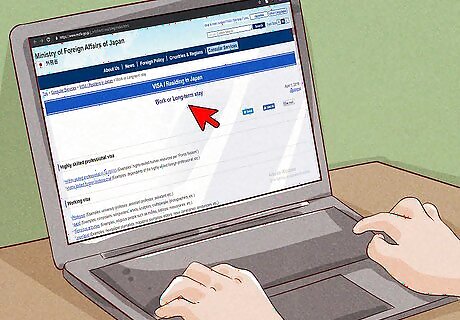 Choose the visa that is right for your needs. Consider how long you are intending to stay in Japan and what you will be doing while you are there. Are you a college student? Will you be pursuing art? Will you be teaching English? Are you married to a Japanese citizen? These different factors will determine which visa is right for you. Go to https://www.mofa.go.jp/j_info/visit/visa/long/index.html to look at the list of working and long-term visa schemes available. Click on the link to schemes you think apply to you to learn more.