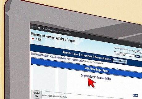 Apply for a general visa if you are a student or pursuing cultural activities. Cultural activities could include an unpaid internship or studying some aspect of Japanese culture, such as martial arts. Consult the website of your home country's Japanese embassy for more information about visa regulations.