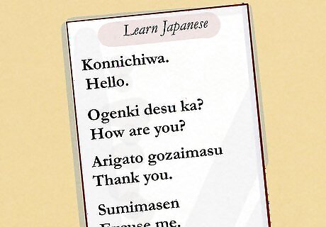 Learn Japanese, if you don’t know it already. You don’t have to be fluent in Japanese before you move, but having some knowledge of Japanese will help you navigate, work, and make friends once you arrive. See if your local community college offers a course, or check out an online course. Start with essential phrases! Konnichiwa means hello. Ogenki desu ka? means how are you? Arigato gozaimasu means thank you. Sumimasen means excuse me.