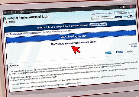 Apply for a working visa if you plan to work. If you have a bachelor’s degree and speak English, the most common way to work in Japan is to teach English. Many education companies in Japan hire English-speaking foreigners on one or two year contracts. You would then apply for a visa as a Specialist in Humanities/Instructor. You do not need to have a degree in English to get a job, you just need to be fluent in English and have a four-year college degree. If you don’t have a bachelor’s degree, employment options will be more limited.