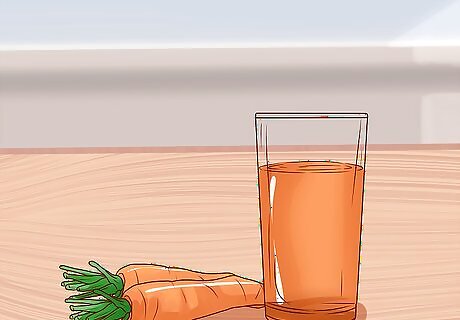 Use beet or carrot juice. To add red tints to your hair, try beet or carrot juice. For deep reds and strawberry blonds, use beet juice. For a more orange-red color, go with carrot juice. All you have to do is add about a cup of juice to your hair. If your hair is dry, you can add in a splash of coconut oil to condition your hair at the same time. Beet and carrot juice be used to create deeper and more purple tones in your hair. When you finish, wrap your hair in a towel or shower cap and let the juice sit for about an hour. Wear older clothing and gloves while you wait, as these juices can stain easily. Beet stains, especially, are difficult to get out. Rinse the juice out after an hour. If you want a darker color, repeat the process the next day.