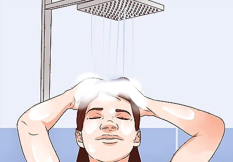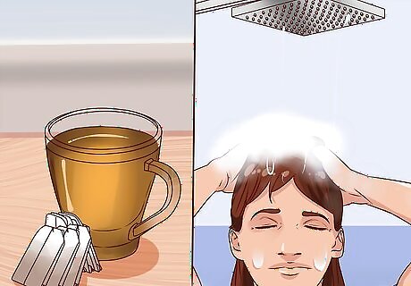 Shampoo your hair. While waiting for the tea to cool, shampoo your hair. Do so as you normally would, using your regular hair care products. You will add the chamomile after your regular washing regimen.