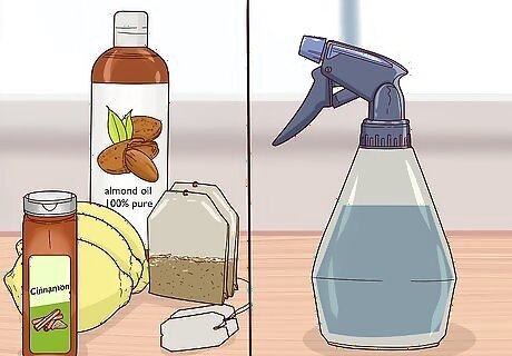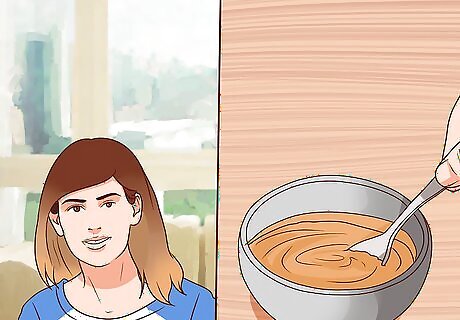 Lighten hair with a homemade leave-in conditioner. Gather juice from three lemons, two bags (four grams) of camomile tea steeped in one cup (eight ounces) of boiling water, one teaspoon (5 grams) of cinnamon, and one tablespoon (0.5 ounces) of almond oil. When the tea has cooled, strain out the leaves and combine all the ingredients in a small bowl and transfer to a spray bottle. Shake before use and spray the mixture on the areas of your hair that you want to lighten. Expose your hair to the sun for 10 to 15 minutes, making sure to take the necessary precautions to protect yourself from the UV rays.
