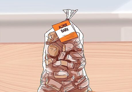 Use alder bark. If sage does not work for you, you can try using alder bark. This is a botanical substance that produces a slightly lighter shade than sage. It can be used to lighten graying locks or darken naturally blond hair. Obtain bark chips from a health food store or buy them online. Simmer an ounce of the chips in a quart of water for about half an hour. Cool, drain, and use the mixture the same way you would use a sage mix.