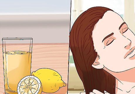 Try lemon. If you want to lighten your hair naturally, try using lemon. Lemon may be able to lighten your hair a shade or 2. Mix a cup of water with two tablespoons of lemon juice. Then, apply it to wet hair and allow your hair to dry naturally. See if you notice a lightening effect. Wait until your hair has dried on its own to wash or rinse. Repeat this treatment once a week to slowly lighten your hair. Don't do it any more than this or you could damage your hair.