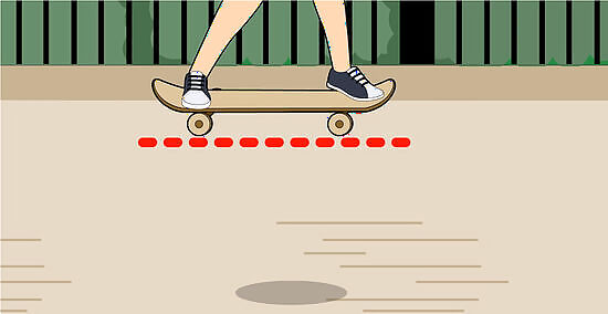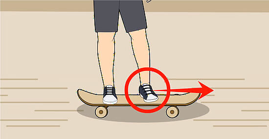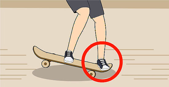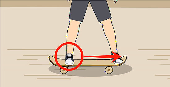 Put that back foot in the middle of your trucks. This will feel a little funny at first, but you'll get used to it. The closer you move your foot to the front bolts, the higher you'll be able to nollie. However, the closer your back foot is to the front of your board, the less stable you'll be, so if you're more of a beginner, you can move that back foot a little further back. Once you've positioned your front and back feet, you have to get comfortably balanced in this position before you try the nollie. If you feel off-kilter, then you won't be able to land the trick.