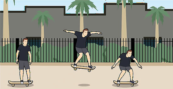 Keep your board level as you land to stay centered. Make sure to maintain your balance as you ride away from the nollie in a secure position.