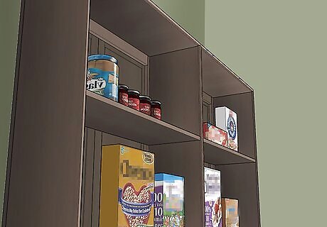 Create an open-faced pantry to free up useful space. In many cases, concealed or walk-in pantries take up a lot of room they don’t need to. Creating an open-faced pantry with a free standing or wall mounted shelf system will better utilize the available space while encouraging you to pare down and organize the supplies you already have. Instead of using it to store food, keep bulky and non-perishable supplies in your pantry.