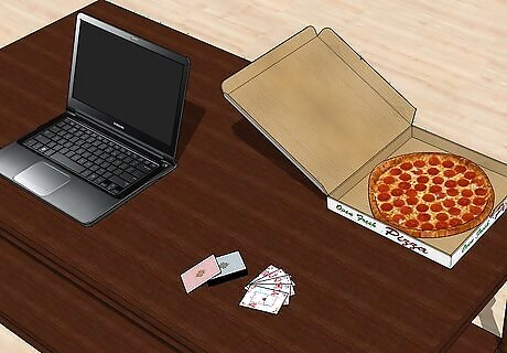 Use a single table for multiple purposes. Try to replace multiple distinct tables, such as a dining room table, game table, and desk, into a single furniture item. This will open up a lot of additional space while providing the exact same level of functionality. If possible, convert your table into a storage area as well by placing a long tablecloth over it and hiding containers underneath.